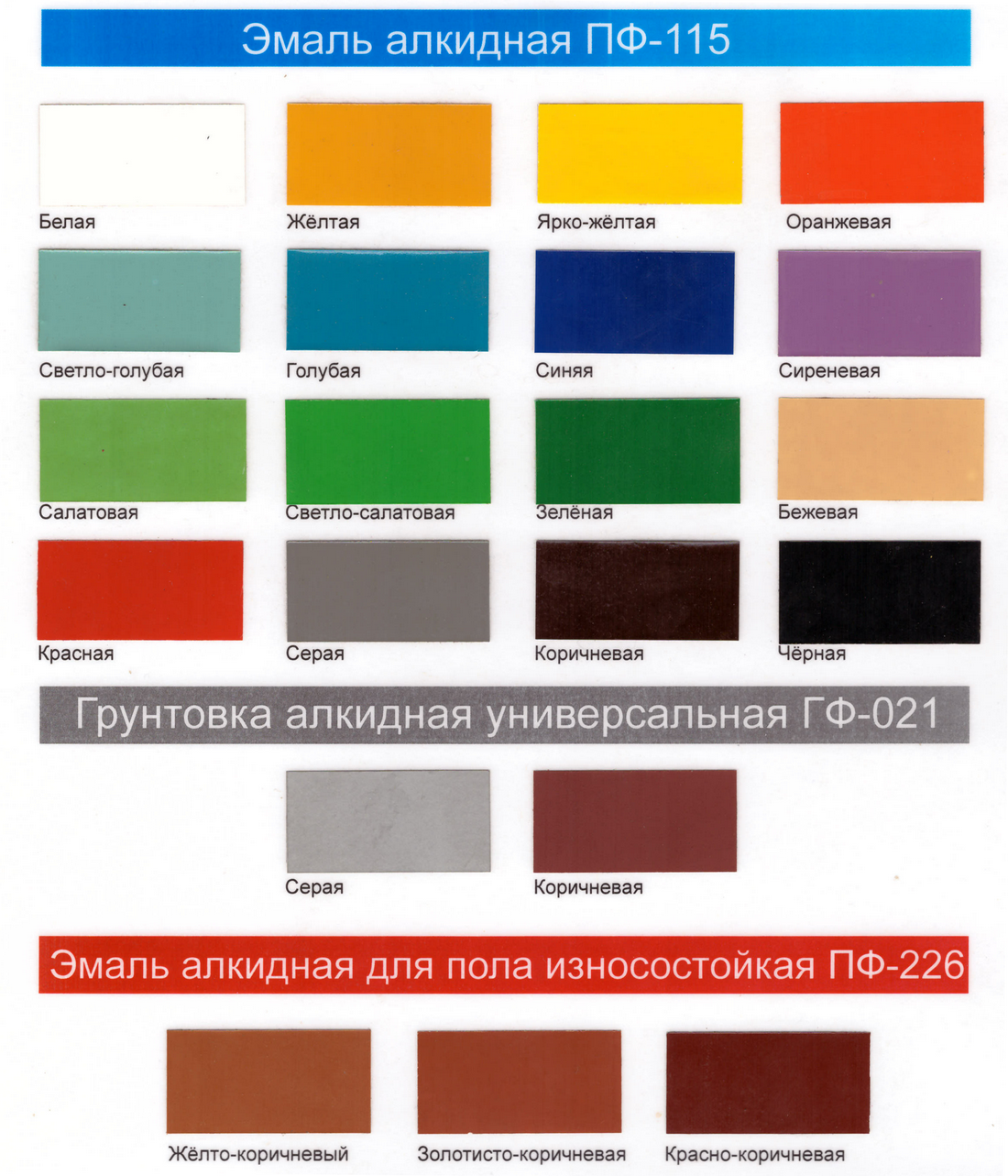 СТАНДАРТНЫЕ ЦВЕТА ПРОДУКЦИИ